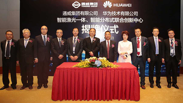 揭牌儀式合影留念本報(bào)訊(通訊員 吳小平)3月28日,通威與華為技術(shù)有限公司在深圳正式宣布成立智能漁光一體、智能分布式聯(lián)合創(chuàng)新中心,并隆重舉行揭牌儀式。十一屆全國(guó)政協(xié)常委、通威集團(tuán)董事局劉漢元主席,通威股份董事、通威集團(tuán)禚玉嬌總裁,華為公司高級(jí)副總裁、網(wǎng)絡(luò)能源總裁侯金龍及雙方高管團(tuán)隊(duì)出席儀式。據(jù)悉,雙方計(jì)劃在智慧漁業(yè)與智能光伏一體融合解決方案、分布式光伏等領(lǐng)域進(jìn)行聯(lián)合研究。