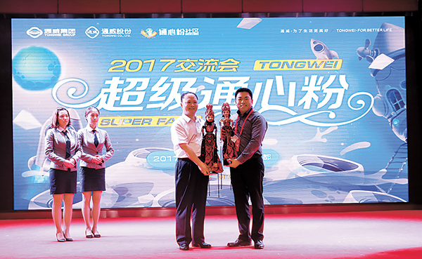 盛典前一天,作為預(yù)熱活動之一的“2017超級通心粉交流會”也在一片歡聲笑語中熱鬧開啟,十一屆全國政協(xié)常委、通心粉項目組總指揮、通威集團(tuán)董事局劉漢元主席攜集團(tuán)、股份高管蒞臨現(xiàn)場,與全球超級通心粉親切交流,并親自為“2017首屆華東超級通心粉戰(zhàn)績榜”冠亞季軍頒獎。會上,通心粉們歡聚一堂,分享成果,交流經(jīng)驗(yàn),通過現(xiàn)場直播,線上線下百萬粉絲共襄盛舉,同賀通威35年華誕。