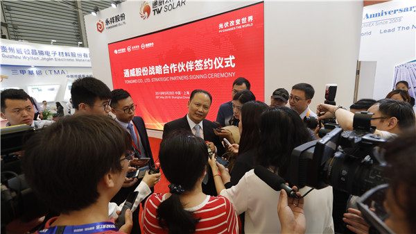 對(duì)于通威的下一步布局,劉主席表示,通威將根據(jù)市場節(jié)奏和發(fā)展需要,適度擴(kuò)大規(guī)模,強(qiáng)化優(yōu)勢環(huán)節(jié),并在發(fā)展中聯(lián)合行業(yè)同仁,優(yōu)勢互補(bǔ),共同促進(jìn)行業(yè)健康良性發(fā)展。劉主席指出,經(jīng)過十年的發(fā)展,中國光伏產(chǎn)業(yè)已成為中國改革開放40年來一張新的靚麗名片。在中國崛起過程中,推動(dòng)從化石能源到清潔能源的轉(zhuǎn)型,不僅是中國環(huán)境改善和能源轉(zhuǎn)型的迫切需求,也是中國對(duì)全球經(jīng)濟(jì)的重大貢獻(xiàn)。當(dāng)中國把清潔能源理念、技術(shù)、產(chǎn)品真正在“一帶一路”當(dāng)中實(shí)踐,全世界會(huì)更敬重、更認(rèn)同中國,中國也會(huì)在全球競爭中贏得更多的機(jī)會(huì)。