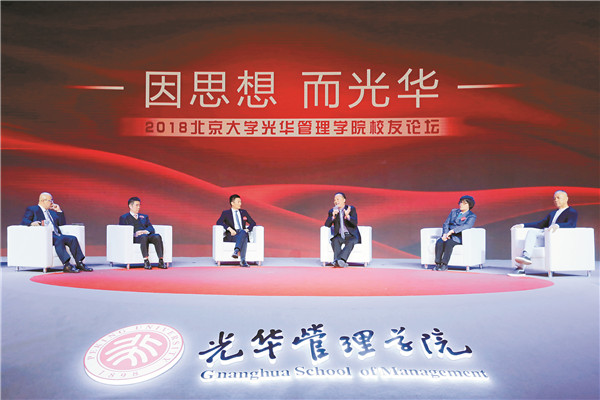 在22日舉行的主題為“因思想·而光華”的北大光華校友論壇上,來自北大光華學院的700余位校友齊聚一堂、淬礪思想。劉漢元主席應邀出席,并與中國建設銀行副行長章更生等著名企業家,就新經濟形勢下企業的機會與挑戰展開圓桌對話。劉漢元主席指出,改革開放40年的歷史告訴我們,尊重并弘揚企業家精神,才能讓實體經濟持續、穩定、健康發展,不斷激發市場經濟細胞活力。企業家和企業家精神的正面價值和積極意義,以及他們帶給整個社會的推動力量、牽引動力、表率示范,都會帶來巨大財富和進步的源泉動力,任何時候都不能小看,任何時候都應該尊重、敬畏、弘揚和保護。因此,堅持“發展才是硬道理”、“發展還是硬道理”、“發展始終都是硬道理”將是我們共同面對的命題,唯有這樣才能實現民富與國強,才能為中華民族的偉大復興奠定堅實的經濟基礎。
