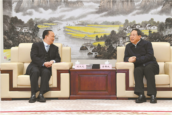 安徽省委書記、省人大常委會(huì)主任李錦斌與劉漢元主席親切交談