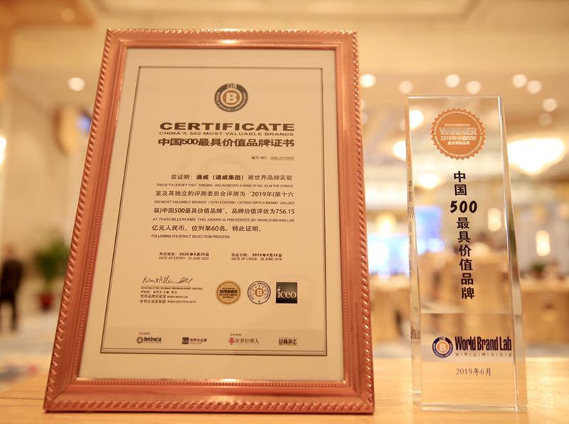 2019年6月26日,由世界品牌實驗室、《世界企業(yè)家》等共同主辦的2019年第十六屆世界品牌大會暨2019年(第十六屆)中國500最具價值品牌發(fā)布會在京隆重舉行。繼2018年以550.29億元突破550億元大關(guān)之后,2019年通威集團以756.15億元再創(chuàng)品牌價值新高,連續(xù)第16年入選中國品牌國家隊行列!從2004年的19億元,到2019年突破756億元,通威品牌價值在短短16年里增長了近40倍,展示了全國乃至全球綠色農(nóng)業(yè)和綠色能源龍頭企業(yè)和領(lǐng)軍品牌的雄厚實力。
