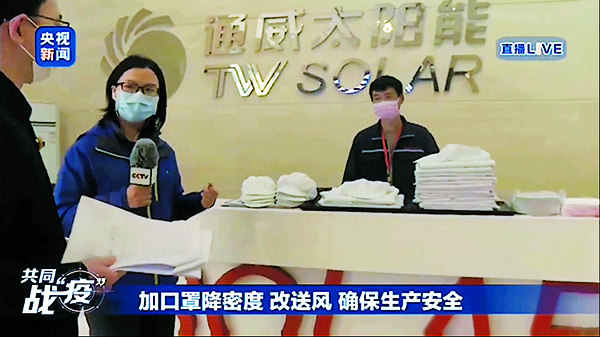 央視新聞《共同戰(zhàn)“疫” 》特別欄目記者走進(jìn)通威太陽能成都基地