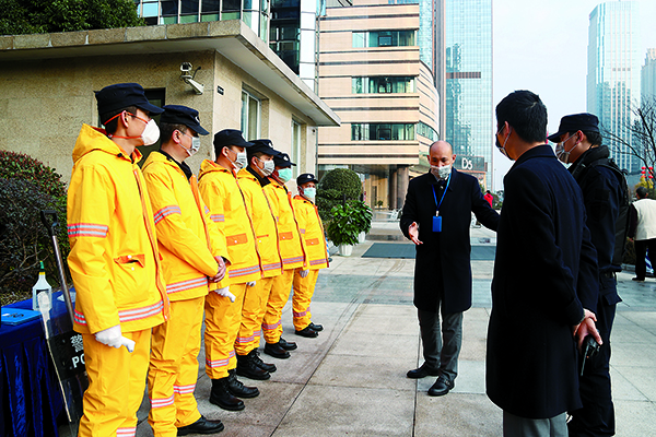 “秩序部都是部隊出身,關(guān)鍵時刻,就是要靠得住,頂?shù)蒙稀_@就是一個沒有硝煙的戰(zhàn)場,我們就是戰(zhàn)士!”伍勇剛說道,他也是這樣做的。按照要求,自1月24日至今,他帶領(lǐng)秩序部全員提前結(jié)束春節(jié)假期,全體員工7點半到崗,在國家號召“宅”家的時刻,義無反顧地“逆行”而上。面對如此大的疫情,沒有慣例可循。伍勇剛匯同環(huán)境部、客服部、秩序部、工程部同事們一起,在項目防控現(xiàn)場,一個細節(jié)一個細節(jié)地推敲,一個條款一個條款地完善,目的只有一個——萬無一失!反復(fù)推演、反復(fù)調(diào)整,經(jīng)過連續(xù)幾個晝夜的努力,最終方案通過領(lǐng)導(dǎo)認可實施,為集團總部筑起了一道堅實的防疫安全“生命線”。