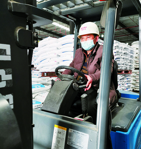 今年43歲的鄒洪東,加入通威22年,是一位不折不扣的“老通威人”。2月6日當(dāng)天,公司銷量急增,成品裝車工作非常緊張。他接到公司通知立即到崗,和另外兩位同事一起,支援成品裝車工作。從清晨一直忙到晚上9點,他和同事開著叉車在成品倉庫往返300余次,單日總裝貨量突破1000噸。
