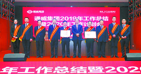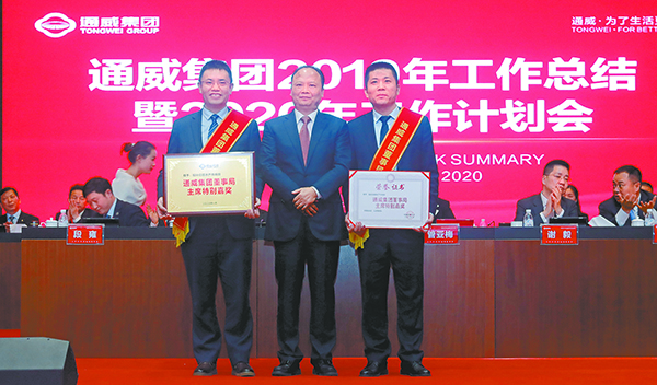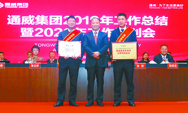2019年,在劉漢元主席的堅強領(lǐng)導(dǎo)下,全體通威將士深入貫徹主席“聚勢聚焦、揚長砍短”的重要指示,凝心聚力,奮發(fā)圖強,直面市場競爭,高效整合各項資源要素,用汗水澆灌收獲,以實干篤定前行,取得了令行業(yè)內(nèi)外矚目的歷史性突破與跨越式發(fā)展,朝著“三個世界級龍頭”的宏偉目標(biāo)加速邁進!在通威集團2019年工作總結(jié)暨2020年工作計劃會議上,隆重揭曉了通威集團董事局主席特別嘉獎等系列獎項。