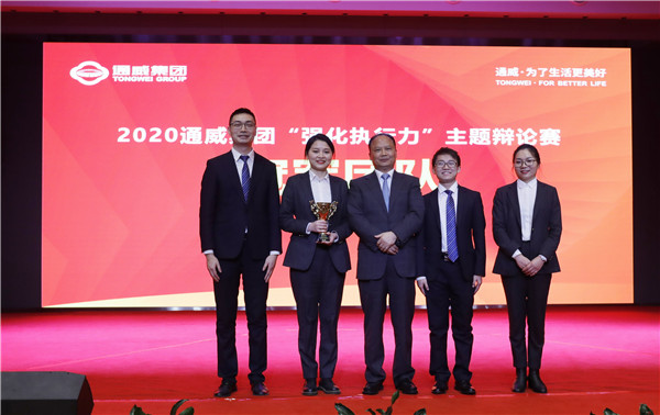 本報(bào)訊(唐勝/文)2020年12月29日,以“聚焦執(zhí)行文化 鍛造執(zhí)行鐵軍”為主題的2020通威集團(tuán)“強(qiáng)化執(zhí)行力”主題辯論賽暨頒獎盛典在通威國際中心隆重舉行。十一屆全國政協(xié)常委、全國人大代表、通威集團(tuán)董事局劉漢元主席,集團(tuán)禚玉嬌總裁,股份總裁郭異忠 ,集團(tuán)副總裁胡榮柱,集團(tuán)企業(yè)文化專項(xiàng)工作小組執(zhí)行組長、集團(tuán)副總裁黃其剛,股份監(jiān)事會主席鄧三,集團(tuán)財(cái)務(wù)總監(jiān)肖吉華,股份金融總監(jiān)、通威新能源公司執(zhí)行董事兼總經(jīng)理邱艾松,股份信息總監(jiān)周勇,集團(tuán)工會主席、集團(tuán)企業(yè)文化專項(xiàng)工作小組執(zhí)行組長、通威大學(xué)執(zhí)行副校長張紅纓,四川大學(xué)公共管理學(xué)院教授陳麗,四川省委省直機(jī)關(guān)黨校副教授、博士吉媛等領(lǐng)導(dǎo)嘉賓出席。四川電視臺知名主持人楊林擔(dān)當(dāng)大會主持。