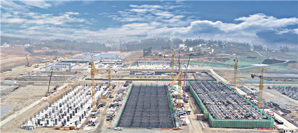4月21日,專項傳播小組走進通威新能源產業各基地大走訪的第四站——云南通威高純晶硅公司,施工現場一片繁忙景象,十余個工地塔吊林立、施工車輛來回穿梭、2000余名建設者熱火朝天,地管、球罐、精餾塔、冷氫化等裝置已進入安裝階段,一座現代化化工廠正在快速崛起。2020年11月,項目正式開工,彼時的廠區還是一片荒地,短短6個月的時間,這里的變化已然是翻天覆地:一座座塔吊眾相林立、一棟棟廠房拔地而起、一個個建設關鍵節點如期或提前實現。