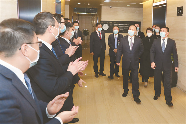 “新年好!”每到一處,劉主席都向大家揮手致以新春的問候,并仔細(xì)查看員工辦公環(huán)境,與大家親切交流,關(guān)心和了解員工上班第一天的工作情況。在聽取各部門負(fù)責(zé)人關(guān)于當(dāng)前重點(diǎn)工作和重點(diǎn)項(xiàng)目推進(jìn)情況的匯報(bào)后,主席對(duì)大家過去一年取得的優(yōu)異成績(jī)表示祝賀,并鼓勵(lì)大家在新的一年里再創(chuàng)佳績(jī)。