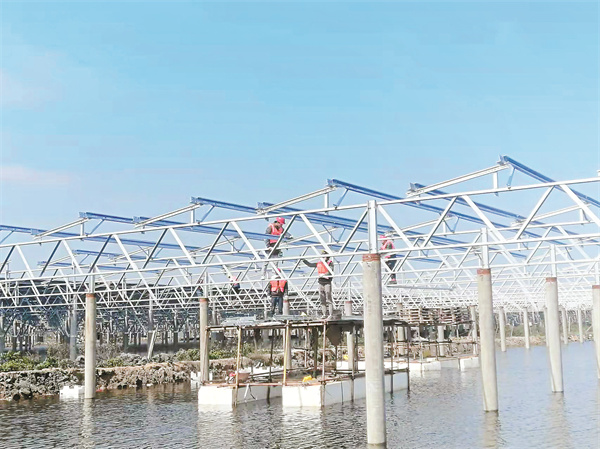 在廣東臺(tái)山,2月10日,通威“漁光一體”(臺(tái)山)現(xiàn)代漁業(yè)產(chǎn)業(yè)園二期光伏發(fā)電項(xiàng)目正式復(fù)工。復(fù)工以來(lái),面對(duì)復(fù)雜的疫情形勢(shì),項(xiàng)目部積極響應(yīng)政府號(hào)召,詳細(xì)摸排異地返崗人員,并進(jìn)行核酸檢測(cè),保障項(xiàng)目復(fù)工安全。針對(duì)近期連續(xù)降雨天氣,項(xiàng)目部召開(kāi)專項(xiàng)會(huì)議,制定雨季施工措施,協(xié)調(diào)施工單位及時(shí)抽排水及雨停間歇穿插施工,確保項(xiàng)目進(jìn)度。