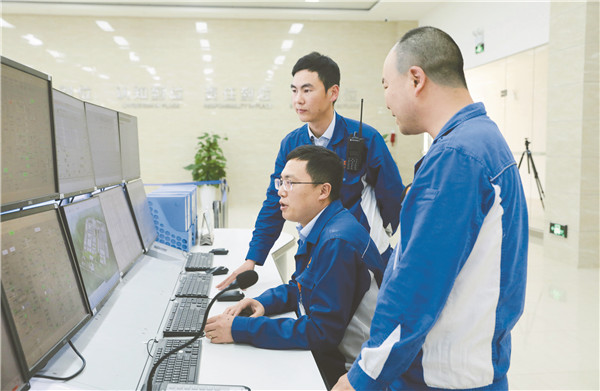 永祥股份副總經(jīng)理兼永祥新能源常務(wù)副總經(jīng)理羅周查看公司生產(chǎn)運(yùn)行數(shù)據(jù)