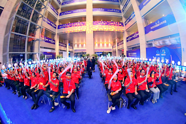 通威40年慶典暨“大干100天·再上新臺階”大會當晚,共同度過這個難忘夜晚的,還有全國各地及海外地區300余家分、子公司的5萬通威人,因為疫情原因,他們通過觀看實時直播,相聚“云端”,共慶生日!