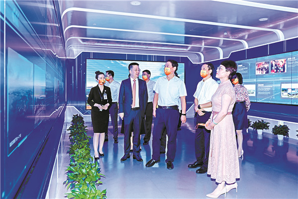 通威集團禚玉嬌總裁,通威股份董事長、CEO謝毅陪同趙俊民常委參觀集團體驗中心