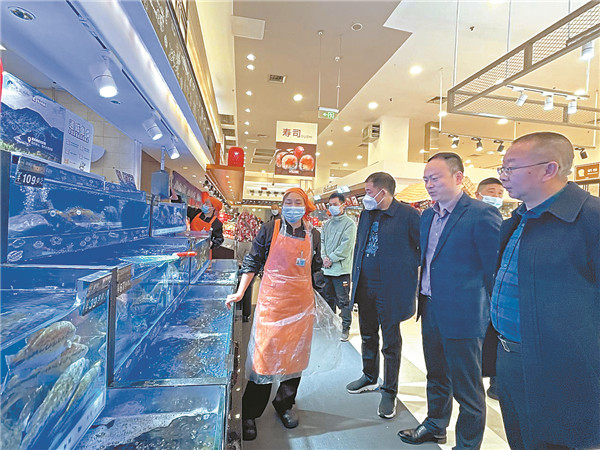 春節前夕,通威食品總經理陳波率食品管理團隊深入春源連鎖終端、伊藤、盒馬等通威魚銷售專柜、通威魚園區及通威三聯水產市場,詳細詢問節日期間的營業安排、值班等情況,勉勵大家盡職盡責做好本職工作,用高品質的產品和最好的服務回報廣大消費者,并向一線銷售人員致以新春的祝福。