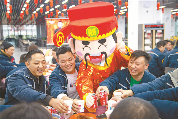 對于堅守崗位就地過節的員工,就地過年從來不代表將就過年。除夕夜,通威太陽能為留守員工們準備了美味可口的年夜飯及春節福利餐,年年有“魚”、吉祥三“寶”、花開全肘、黃燜兔、粉蒸排骨、宮保雞丁、小火鍋……大家圍坐在一起,與同事們一起同享美食、共度佳節,感受不一樣的“家”的味道與關懷。同時,還特別策劃組織了“瑞兔迎春 歡度除夕”游園會、寫福字掛春聯送祝福、投壺套圈贏禮品、驚喜抽紅包、齊看春晚、包餃子、開門喜禮等一系列豐富多彩的活動,讓留守員工們在公司也能過上一個開心年、暖心年!