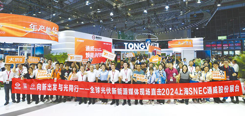 SNEC展會(huì),通威展臺(tái)不僅新產(chǎn)品精彩亮相,人氣爆棚,媒體也以最強(qiáng)陣容聚焦通威,50余家權(quán)威媒體和行業(yè)媒體探訪通威展臺(tái),通威股份董事長(zhǎng)、CEO劉舒琪與媒體團(tuán)現(xiàn)場(chǎng)交流并合影留念。