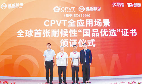SNEC 期間,通威高效組件榮獲全球首張 CPVT 全應(yīng)用場(chǎng)景耐候性“國(guó)品優(yōu)選”證書