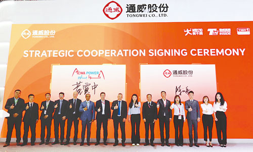兩大展會(huì)期間,通威與ACWA POWER、ENBW、東方國(guó)際、IRISOLARIS、KP Solar Group SMLLC、ECONERGY、EEN等簽署戰(zhàn)略合作協(xié)議。根據(jù)戰(zhàn)略合作協(xié)議,通威與全球合作伙伴將充分發(fā)揮各自優(yōu)勢(shì)資源,加強(qiáng)在可再生能源領(lǐng)域的合作交流,共同推動(dòng)全球可再生能源項(xiàng)目發(fā)展。