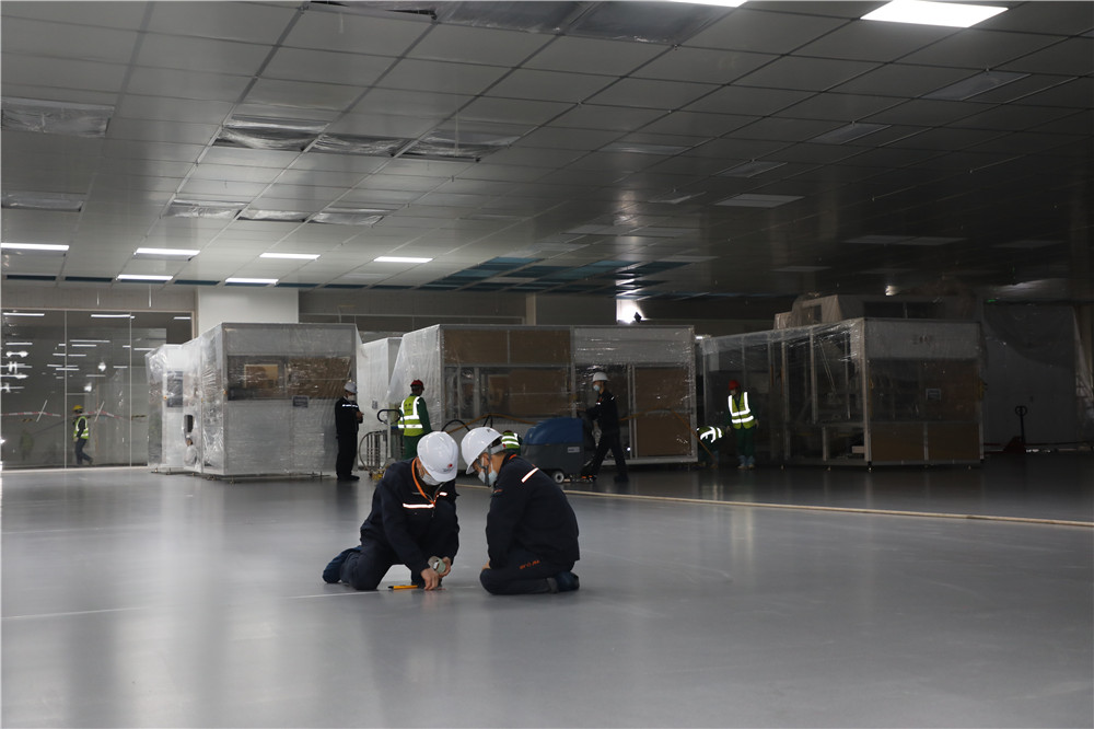 2020年4月9日,工人們緊張施工,為投產(chǎn)做最后準(zhǔn)備