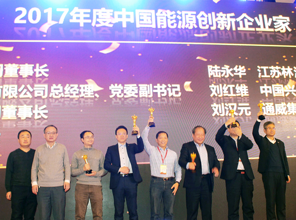 劉漢元主席榮獲“2017年度中國能源創新企業家”殊榮,通威股份光伏事業部總裁陳星宇代為領獎