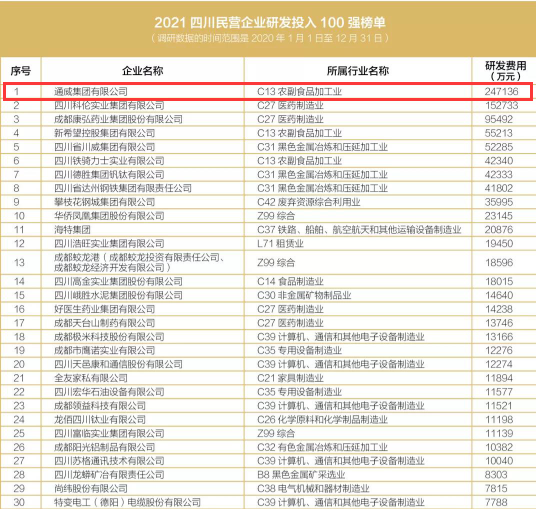 四川民企研發(fā)投入100強(qiáng)榜單發(fā)布,通威集團(tuán)位居榜首