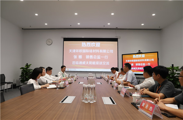 天津環(huán)歐國(guó)際硅材料有限公司銷售總監(jiān)張雅一行蒞臨通威太陽(yáng)能眉山基地參觀交流