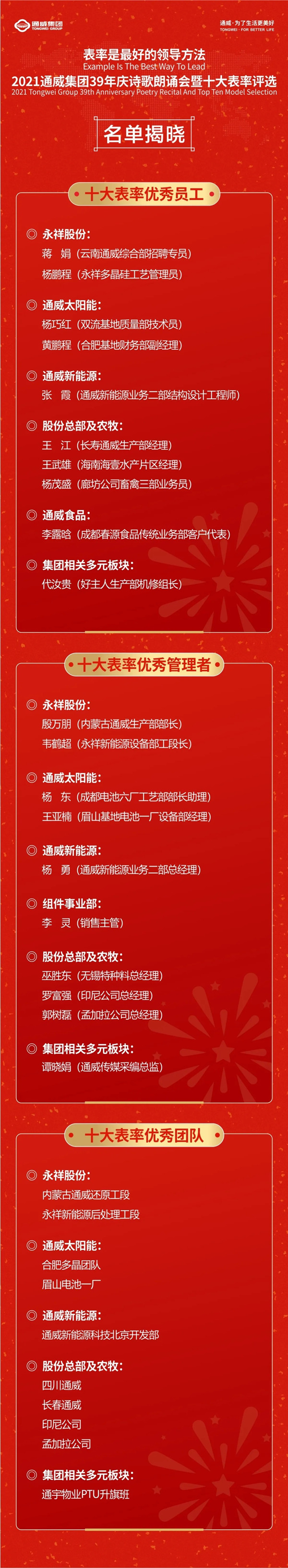 獻禮通威集團39年華誕,通威十大表率名單隆重揭曉!