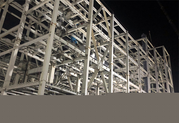 云南通威冷氫化裝置最后一個單體鋼構主體順利封頂