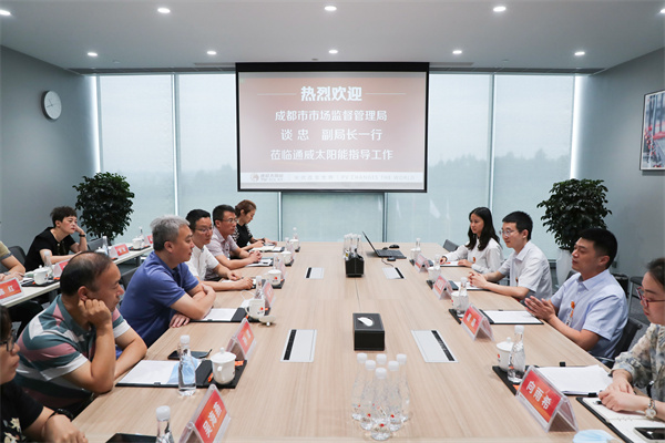 成都市市場(chǎng)監(jiān)督管理局副局長(zhǎng)談忠一行蒞臨通威太陽(yáng)能雙流基地調(diào)研