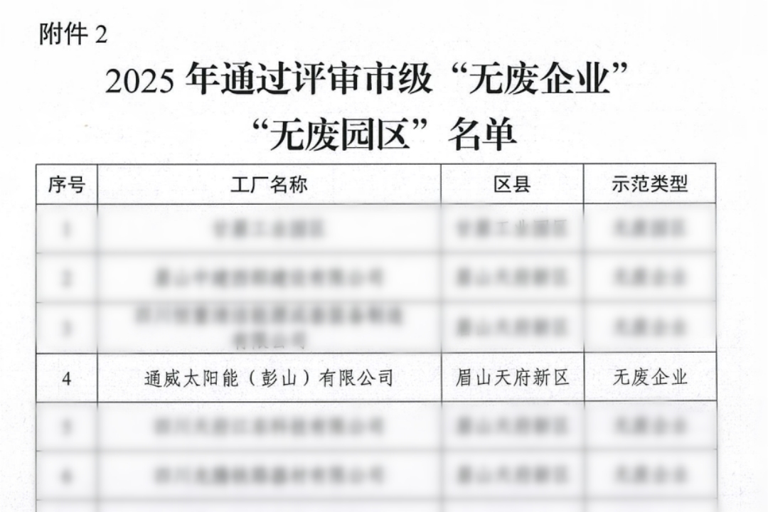 通威太陽能(彭山)有限公司榮獲眉山市“無廢企業”稱號