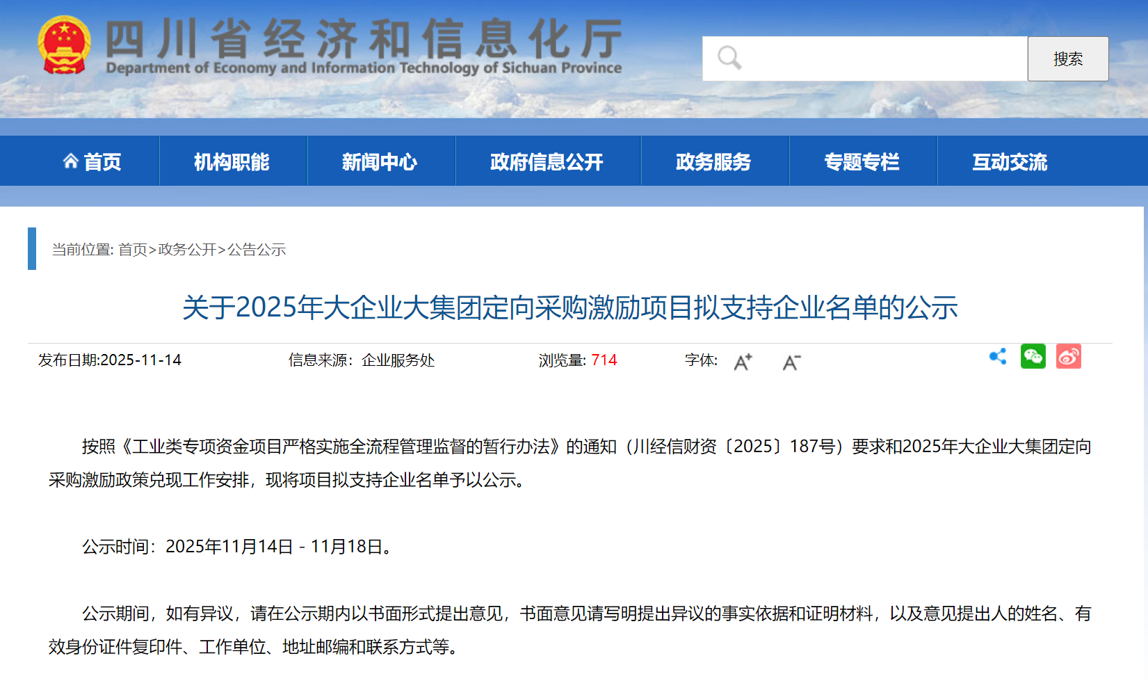 通合新能源(金堂)有限公司榮登四川省2025年大企業(yè)定向采購激勵項目榜單