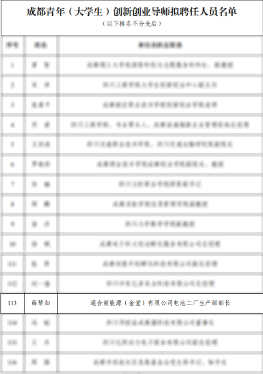 通合新能源(金堂)有限公司工會副主席薛琴如獲聘2025 年成都青年(大學生)創(chuàng)新創(chuàng)業(yè)導師