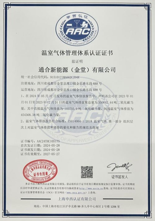 通合新能源(金堂)有限公司順利通過溫室氣體管理體系認(rèn)證