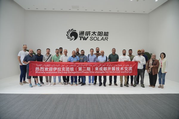 伊拉克石油部能源技術(shù)專家團(tuán)一行到訪通威太陽(yáng)能(金堂)有限公司參觀交流