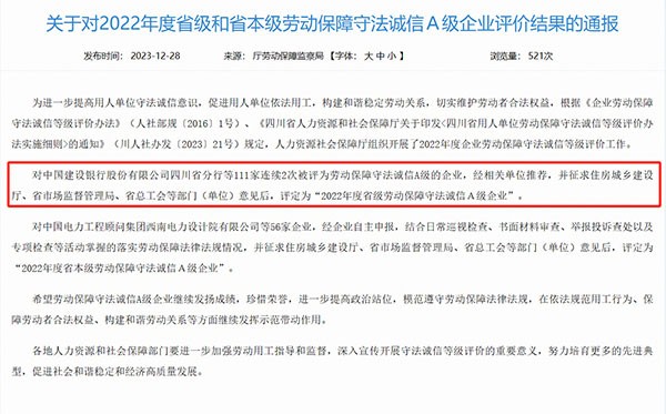 通威太陽能雙基地榮獲“2022年度省級勞動保障守法誠信A級企業(yè)”