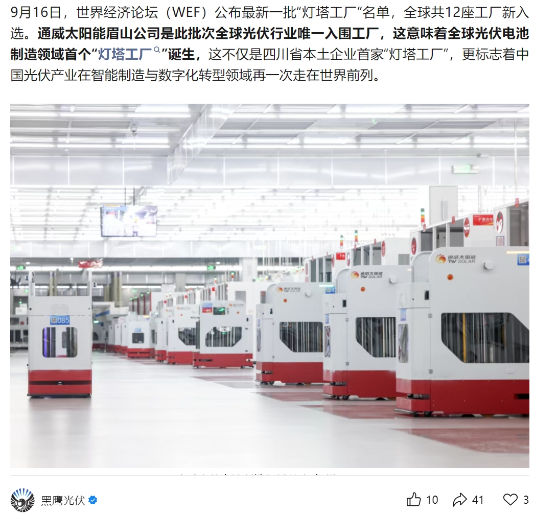 通威太陽能榮膺全球光伏電池制造領(lǐng)域首個“燈塔工廠” 引媒體齊聚焦