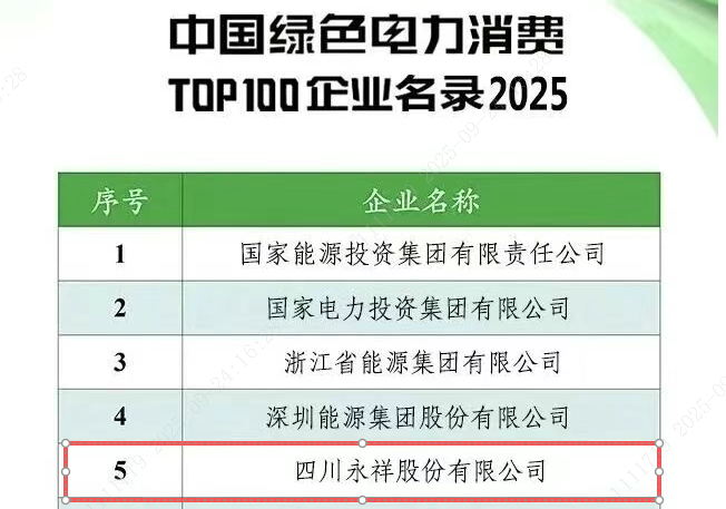 中國綠電消費(fèi)百強(qiáng)出爐!永祥股份位列國內(nèi)民營企業(yè)首位