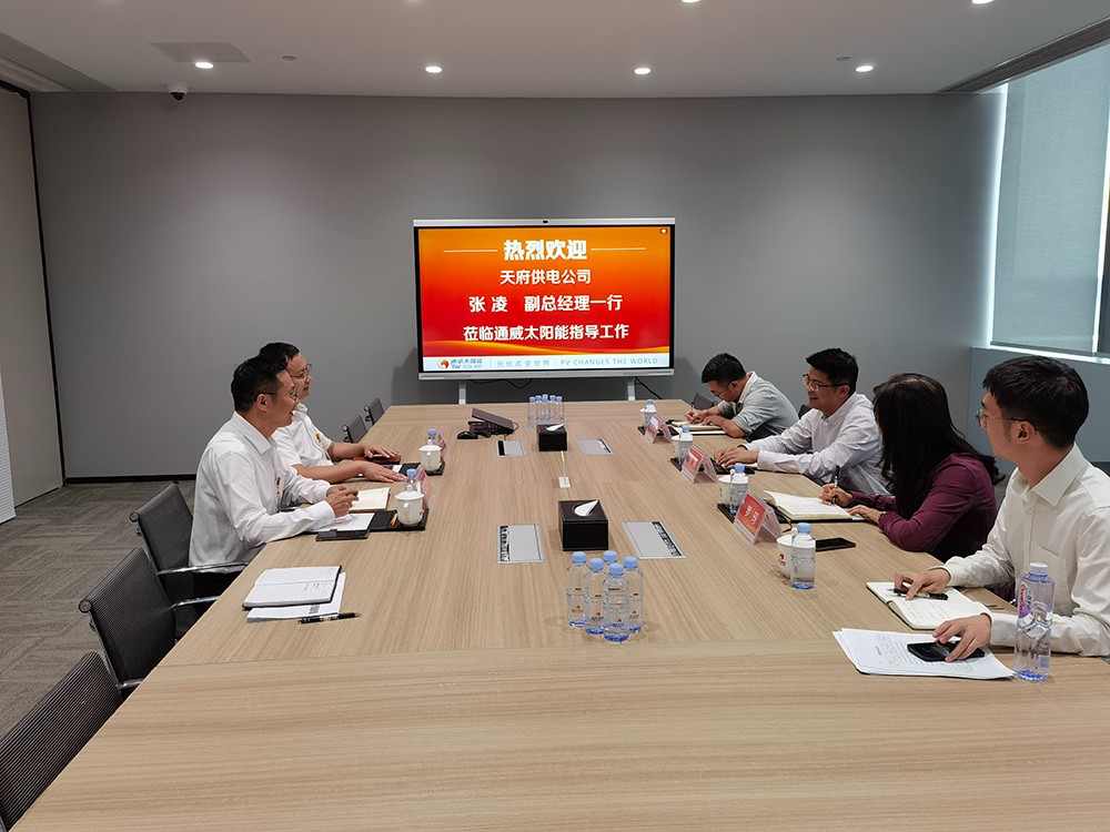國(guó)網(wǎng)天府供電公司副總經(jīng)理張凌一行蒞臨通威太陽(yáng)能雙流基地交流座談