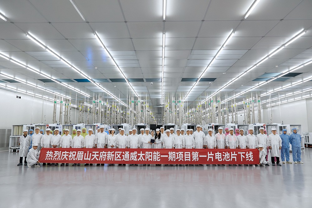 通威太陽(yáng)能(電池)彭山基地一期高效晶硅電池項(xiàng)目第一片電池片順利下線