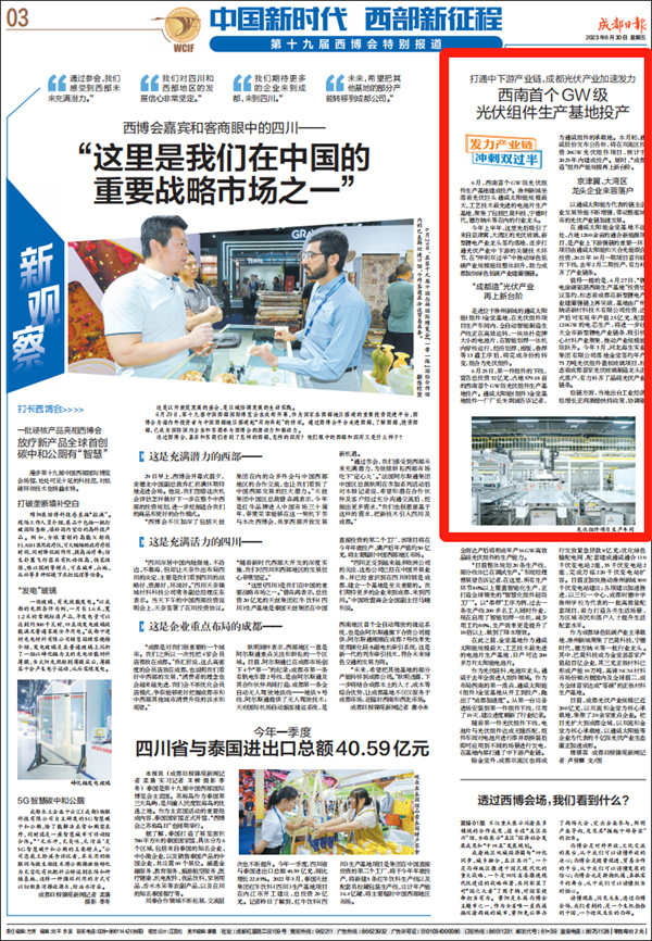 《成都日報》聚焦西南首個GW級光伏組件生產基地投產