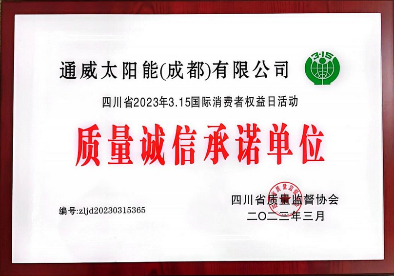 ? 通威太陽能雙流基地榮獲2023年“四川省質(zhì)量誠信承諾單位”稱號