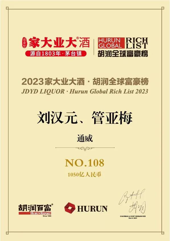 通威集團董事局劉漢元主席榮列2023胡潤全球富豪榜