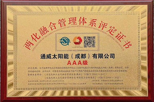 通威太陽能雙流基地順利通過國家兩化融合管理體系貫標AAA級評定