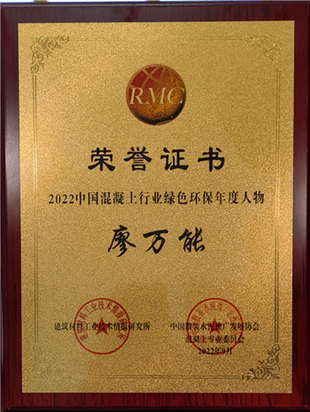 永祥新材料常務副總經理廖萬能榮獲“2022中國混凝土行業綠色環保年度人物”稱號