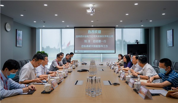 國網天府新區供電公司總經理劉洋一行蒞臨通威太陽能雙流基地交流座談