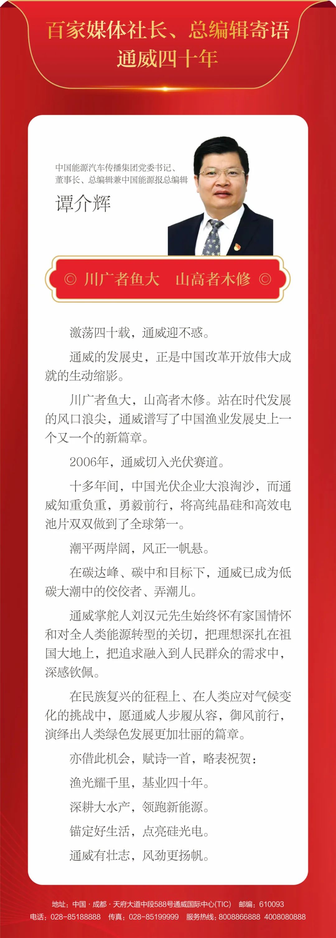 百家媒體社長(zhǎng)、總編輯寄語(yǔ)通威四十年丨川廣者魚大 山高者木修