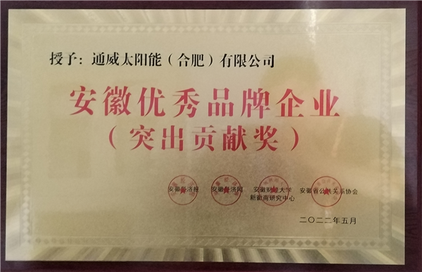 通威太陽能(合肥)有限公司榮獲安徽優(yōu)秀品牌企業(yè)“突出貢獻(xiàn)獎”