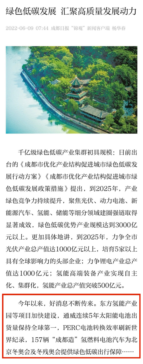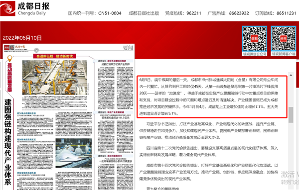 成都日報聚焦通威太陽能金堂基地助力成都建圈強鏈構建現代產業體系