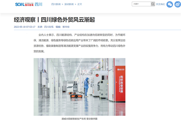 四川在線聚焦通威太能助力四川綠色外貿(mào)發(fā)展