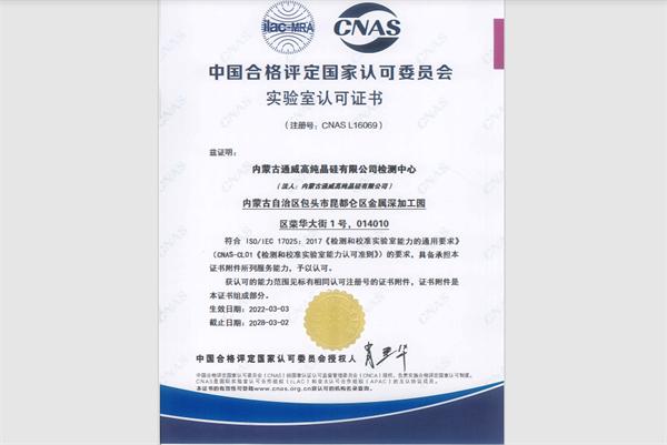內(nèi)蒙古通威檢測(cè)中心榮獲CNAS認(rèn)可資質(zhì)